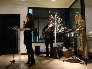 Sewn into the mesh of the back-corner walls of the exhibit is a swarm of white paper butterflies. The lightness of the paper texture brings a considerable amount of levity and dynamism to the exhibit’s visuals, which may have otherwise been bogged down by the metals of the mobiles and the visual weight of the white furniture in the room.